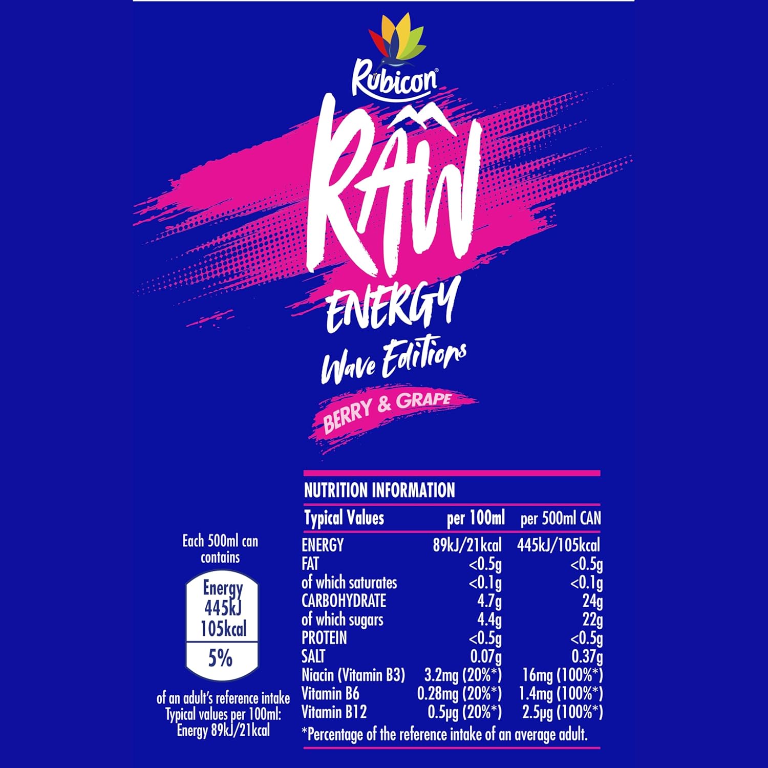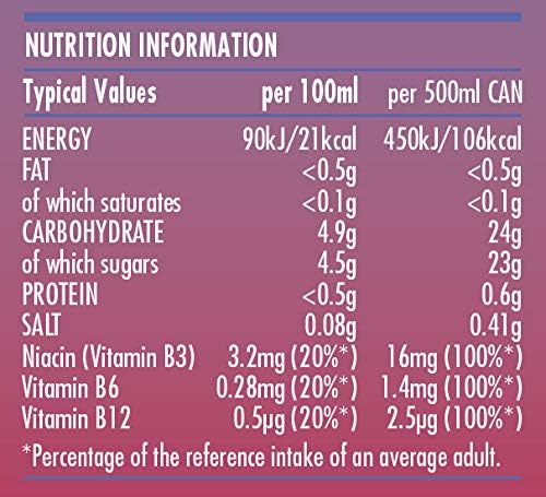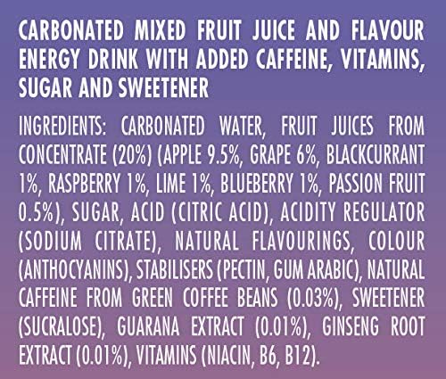Energy Drink Mixed Berry, 12 x 330ml Cans Case, Low Calorie, Lower Sugar, Fizzy Fruit Flavour, Vegan, Gluten Free Drink, B Vitamins, Taurine, Caffeine with Zero Crash, Bulk Crates, Multipack